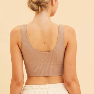 Features: Cropped Length, Removable Padding, Ribbed Fabric, Scoop Neckline