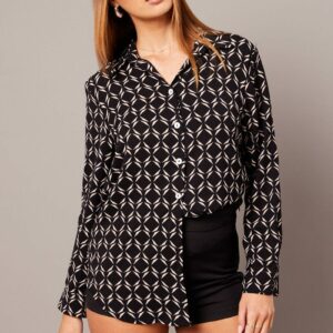 Black Geo Relaxed Shirt Long Sleeve